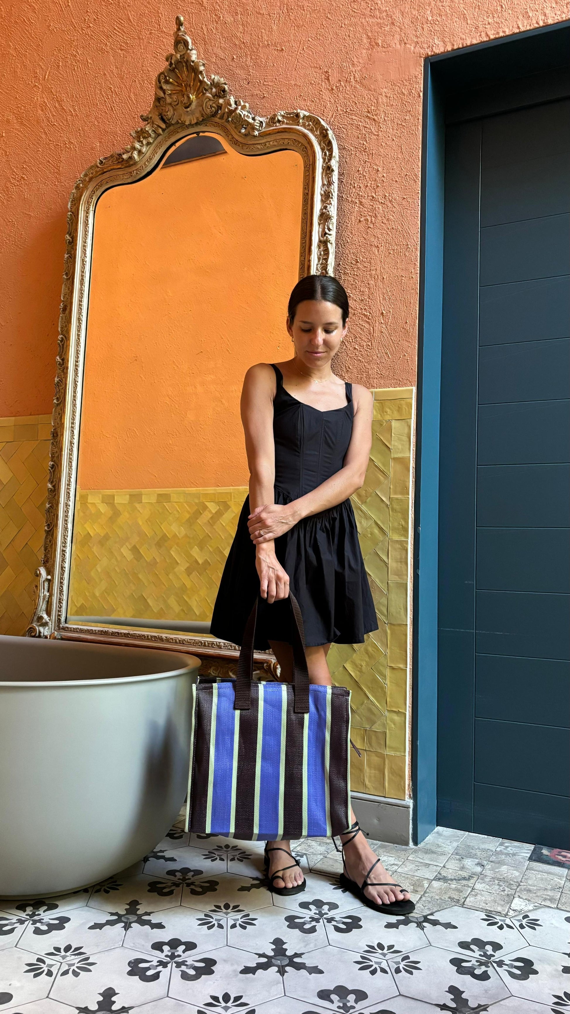 Debido a la naturaleza reciclada de este material textil, la bolsa puede tener imperfecciones menores; estas no se consideran defectos sino cualidades únicas propias de un proceso sustentable y artesanal.