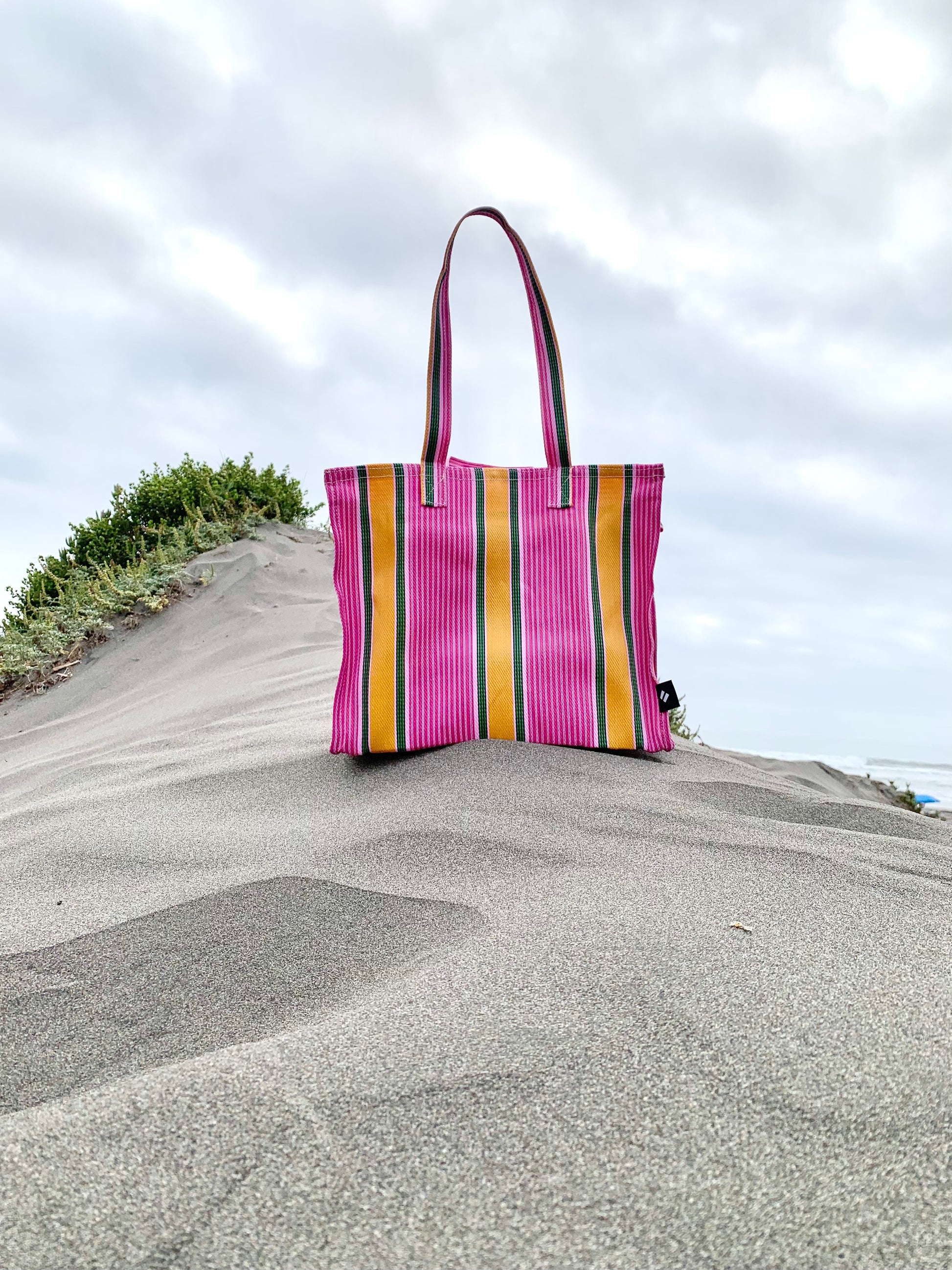 Debido a la naturaleza reciclada de este material textil, la bolsa puede tener imperfecciones menores; estas no se consideran defectos sino cualidades únicas propias de un proceso sustentable y artesanal.